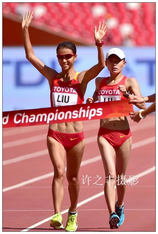 2015年8月28日上午,北京田径世锦赛女子20公里竞走决赛,中国选手刘虹以1小时27分45秒获得冠军,这是中国队在本次世锦赛上赢得首块金牌。工人日报-中工网记者许之丰摄影2015年8月28日记录于北京