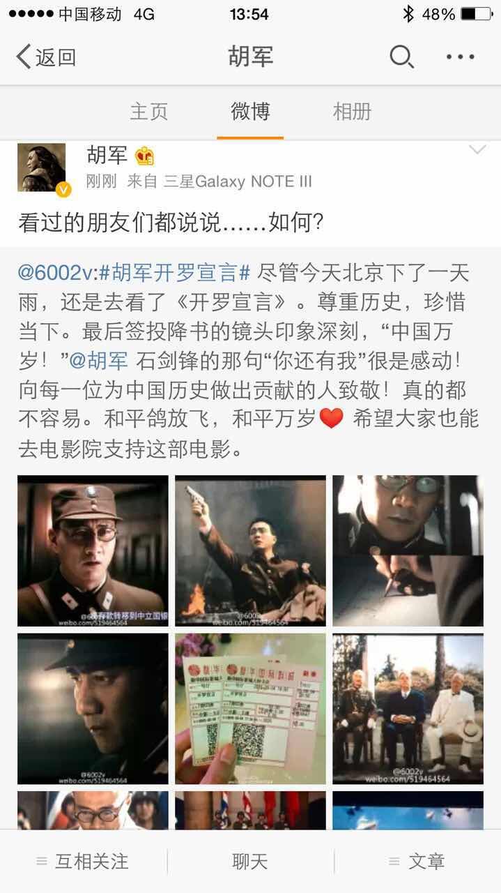 作为男主角来说,我要为军哥哭会儿,太不平了!给我军哥的表现时间那么短!说好的男主角,说好的主线,说好的特别重要的情报人员!怎么就这么点的镜头啊QAQ!他表现得那么好,就这么点时间表现得这么好,不得圈多少粉,又有多少人要跟我抢老胡军儿啊嘤嘤嘤!好了,严肃点_(:з」∠)_【我已经剧透得够多了,也不怕更多,我跟你们说,你们不知道啊,胡军儿特别好,胡军儿的声音特别苏,你们不去影院都感觉不到被军哥环绕的幸福感!快快快,吃我安利,明儿我就是要为了军哥去二刷~\(≧▽≦)/~啦啦啦