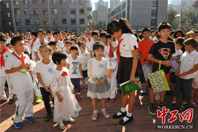 主持人现场采访一年级新生。