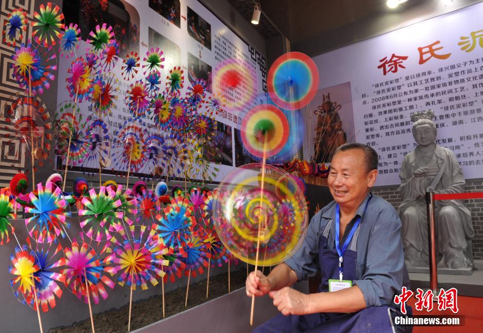 9月11日,传承人夏海全现场展示自己制作的风车车。当日,第五届中国成都国际非物质文化遗产节在成都开幕,本届非遗节吸引了来自中国和世界各地的400多个项目、近500个传承人参展,将举办各类非遗展示、展演、交流等活动400多场。中新社发 刘忠俊 摄
