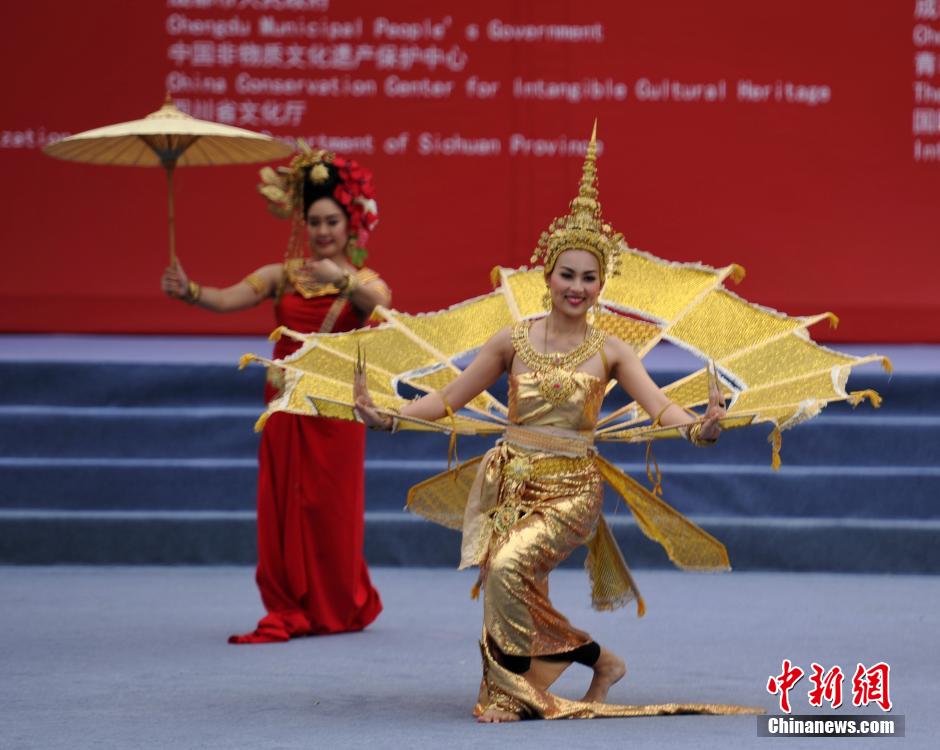 9月11日,泰国舞蹈展演。当日,第五届中国成都国际非物质文化遗产节在成都开幕,本届非遗节吸引了来自中国和世界各地的400多个项目、近500个传承人参展,将举办各类非遗展示、展演、交流等活动400多场。中新社发 刘忠俊 摄