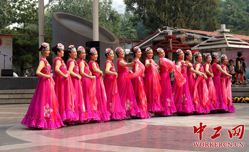 活动在方庄体育公园进行。来自11个单位的200名职工利用休息时间刻苦练习,以熟练且优美的舞姿、自信的状态、高昂的热情展现在观众面前。中工网记者 葛姗 摄