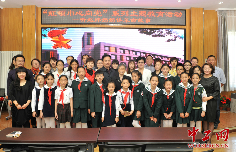 1013日,为了纪念中国人民抗日战争胜利暨世界反法西斯战争胜利70周年,在中国少年先锋队66周年纪念日来临之际,北京市芳草地国际学校举行“红领巾心向党”主题系列活动——听赵炜奶奶讲革命故事。