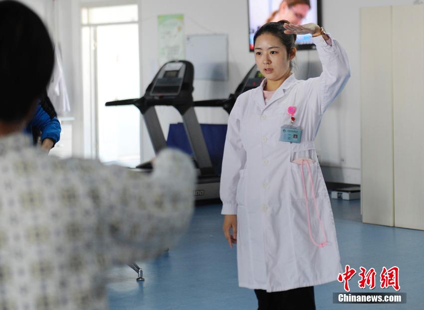 郑婧男除了教授舞蹈、瑜伽等项目外,她还教授康复休养员简单易学的手语课程。 张瑶 摄
