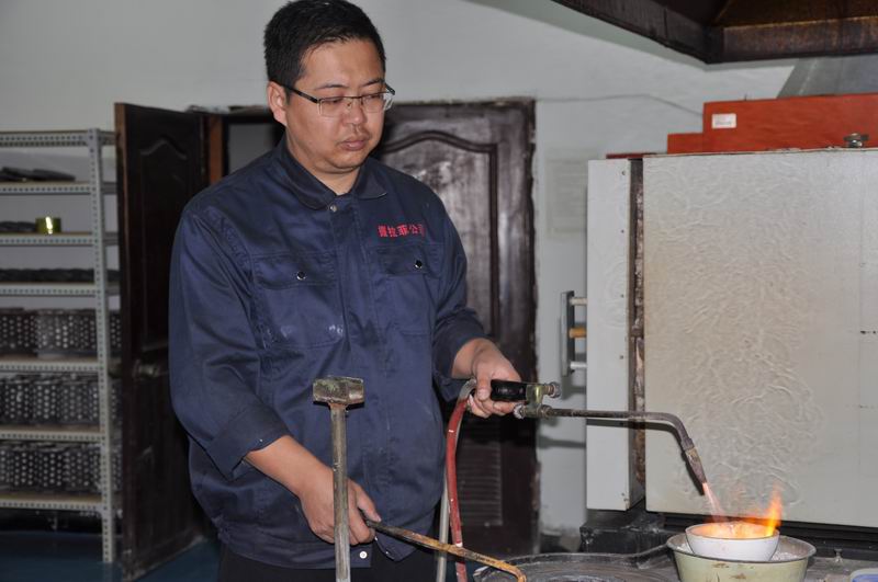 孟剑锋,男,41岁,中共党员,1993年1月走进工美握拉菲,现任北京握拉菲首饰有限公司生产车间技术总监。作为一个已经在工艺美术行业上奋斗了二十二年的工作者来说,他把对工艺美术事业的热爱全部倾注在他的工作中,刻苦钻研技术,积极探索新的工艺制作方法,大胆改进创新。创作出大量的贵金属工艺摆件作品,得到了同行业的高度认可,为中国传统文化的传播和工美事业的发展做出了贡献。甘于平淡的坚守他传承匠人技艺孟剑锋同志是一个极其淳朴憨厚的人,做事认真,待人诚恳。就是这样一个平凡的工美人,从没有一点功底的毛头小伙,经过岁月的打磨,他不离不弃的执着和坚守,一点一滴的积累和创作,最终拥有了工美匠人的技艺。在这充满浮躁的社会,他能够沉下心来,在一个80年代的老厂房里,熔炼、掐丝、整形、錾刻。从细小的首饰、工艺摆件,到两弹一星和航天英雄的奖章,一件件精美的作品就这样在他们手里诞生了。作品受到众人赞叹的背后,是他22年对艺术的追求和潜心付出。