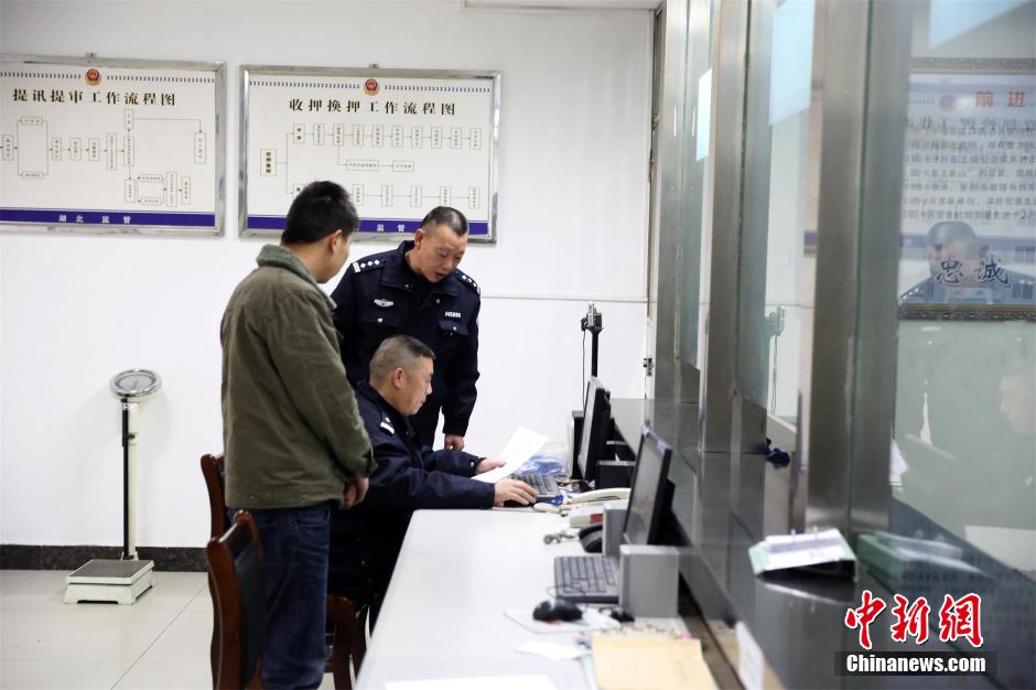 12月23日消息,高墙、电网,武警荷枪实弹站岗。笔者近日走进湖北十堰看守所,镜头记录下看守所值班民警在冬夜里的平凡一晚。图为凌晨1时许,在收押室,值班民警为准备收押的一名犯罪嫌疑人办理关押手续。 赵伟 摄