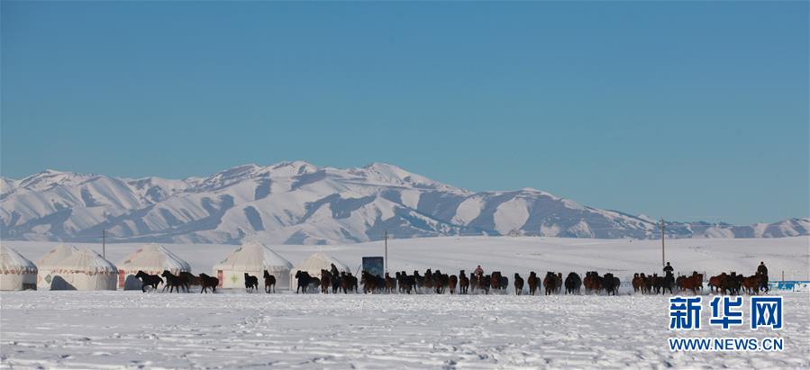 这是昭苏县一家赛马场的马群(1月15日摄)。新疆伊犁哈萨克自治州昭苏县素有“中国天马之乡”的美誉,目前这个县共有伊犁马种畜基地3个,繁育基地12个,马匹存栏达9.5万匹。作为全国知名的马文化休假旅游体验基地,昭苏已连续22年举办天马节,并多次承办国内外马术赛事。新华社记者 王婧嫱 摄