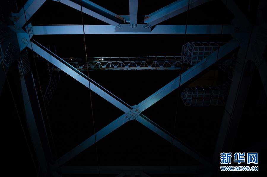 1月20日,在江苏南京大胜关长江大桥,两名桥隧工在离桥面8米高处作业。当日零点到凌晨四点,京沪高铁第一桥——南京大胜关长江大桥迎来了春运前的最后一次大检。负责大胜关大桥检查维护的“守关人”,是上海铁路局南京桥工段大胜关桥梁车间的桥隧工们。深夜,当所有列车都通过后,桥隧工们开始工作。为了检查梁体附属,工人们爬上离地40多米的检查小车,以确保无可能掉落物体;为了检查、更换高强度螺栓,他们爬到桥面二十多米下方的墩台面,而像这样的螺栓大桥上共有约382万个,一旦发现有断裂丢失,需立马标记、记录、上报,以待修补……带着手电筒,穿着反光服,“守关人”把大桥上下走了一遍又一遍;冬夜里的一壶热水、一根烟,就是他们仅有的御寒武器。在上海铁路局南京桥工段工段,还有很多这样的桥隧工。他们日夜工作,保障着辖区内239座铁路桥的安全。 新华社记者 李响 摄