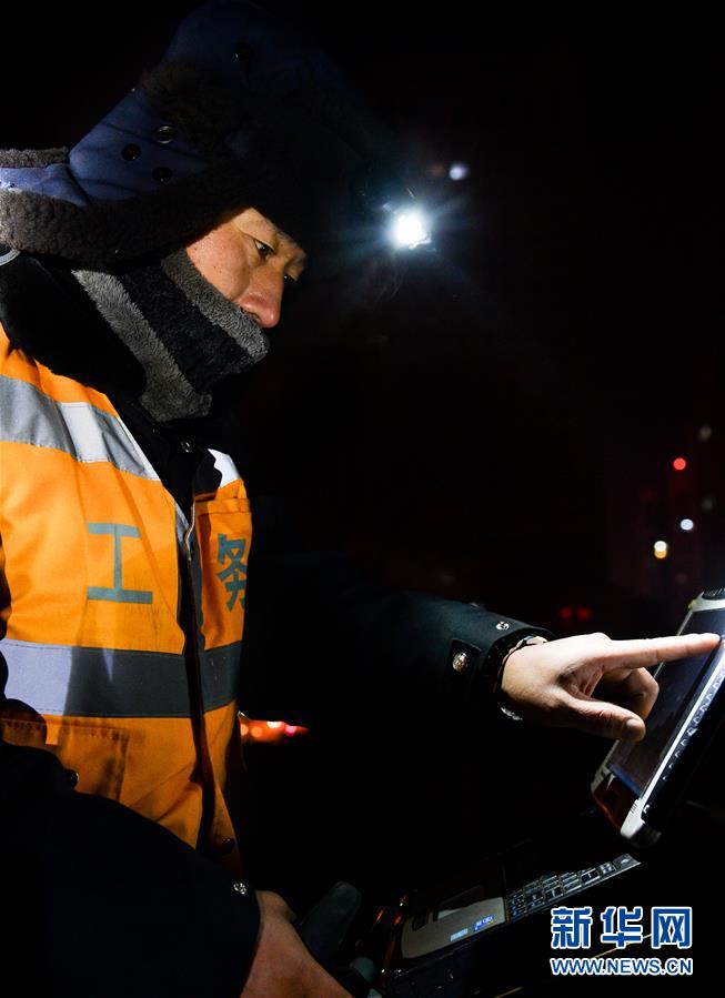 1月30日,长春工务段线路工人张明久在查看轨道检查仪上显示的分析数据。午夜时分,当人们已然进入梦乡时,长春工务段的轨道线路维护工人们刚刚开启他们的春运“夜生活”,在寒夜中默默充当着高铁线路的“守护人”,保障春运期间长吉高铁的安全稳定运行。由于白天高铁要不间断行车,线路工人们只能在没有列车运行的夜晚至凌晨进行作业。春运期间,长吉线路增开了多趟临时旅客列车,轨道线路维护工作的强度也相应提升,线路工人们有时忙起来一连几天都见不到太阳。新华社记者 许畅 摄