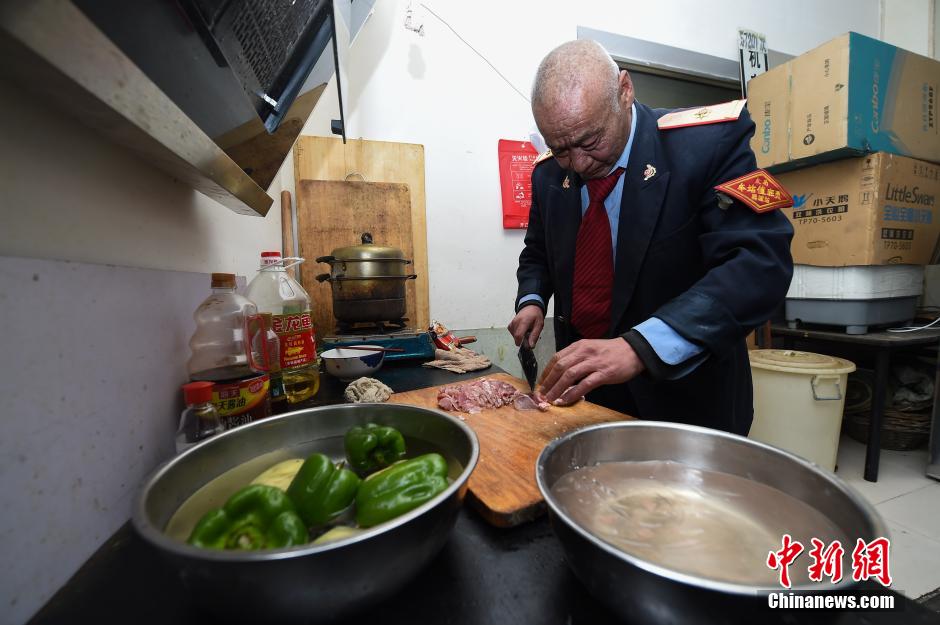 53岁的周跃清做的一手好菜,中午宋涛替他盯控,周跃清下厨为二人做一顿美餐庆祝“小年”。 中新社记者 武俊杰 摄