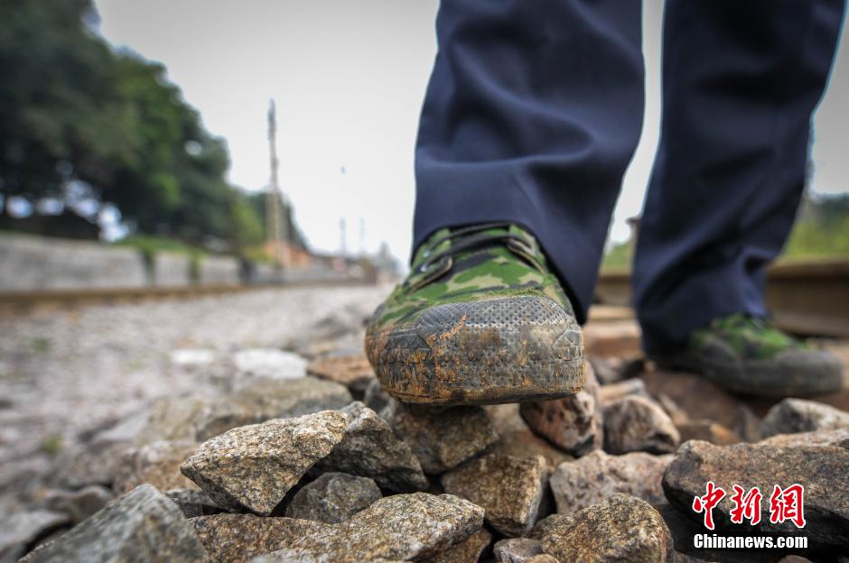 刘克强穿着的解放鞋,他一年最少得换三双。黄威铭 摄