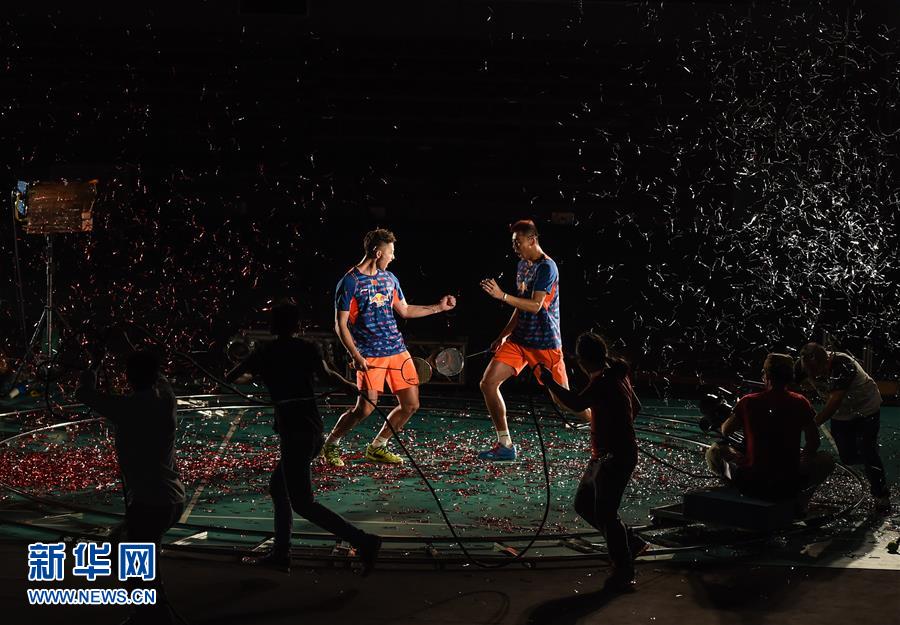 当日,正在海南陵水冬训备战里约奥运会的中国国家羽毛球队队员谌龙、李雪芮、张楠、柴彪、洪炜,抽身参加“羽林争霸”主题宣传片拍摄。已经连续举办七届的 “羽林争霸”红牛城市羽毛球赛是国内最大规模的业余羽毛球赛事,2016年该赛事将在全国进行346场比赛,总冠军球队将获得赴里约奥运会为国羽助威的机会。新华社记者刘大伟摄