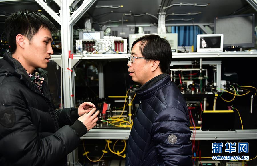 2月25日,潘建伟(右)在中国科学技术大学一实验室内了解科研情况。2016年全国两会开幕在即,第十二届全国政协委员、中国科学院院士潘建伟忙着调研,补充完善关于科技领域的提案。2015年,以中国科技大学“70后”院士潘建伟为“领头羊”的“多光子纠缠及干涉度量”团队,将2015年度国家自然科学奖一等奖“收入囊中”。今年两会期间,潘建伟将就科技创新、科技成果转化、量子通信产业化、基础科研、垃圾分类等方面提出建议。新华社记者刘军喜摄