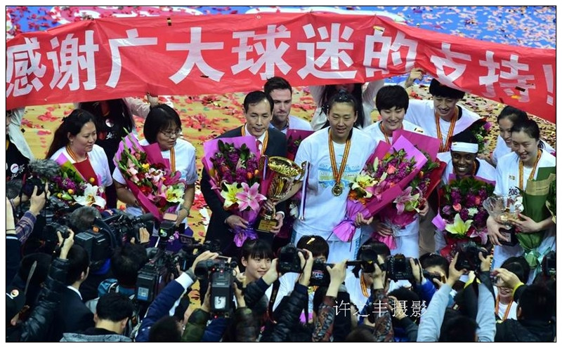 2015年3月8日晚,三八妇女节在北京首钢体育馆观众爆满,2015-2016赛季WCBA总决赛第四场比赛在这里进行。 北京女篮经过四节的苦战以85比63战胜常规赛冠军新疆女篮。总比分北京队3比1战胜新疆队赢得本赛季WCBA总冠军,这也是北京队历史上第二次问鼎WCBA总冠军。工人日报-中工网记者许之丰摄影报道