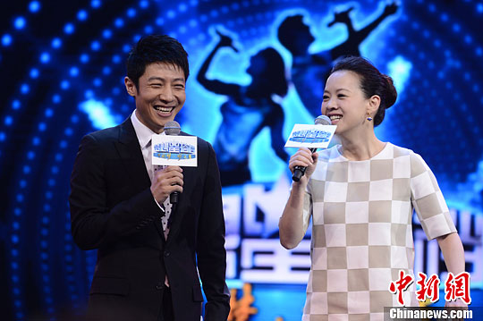 10月15日,由中央电视台打造的大型电视音乐公益节目《梦想星搭档》举行开播发布会,节目将于10月25日晚7点30分于CCTV3首播。图为撒贝宁、曾宝仪欢声笑语不断。中新社发 李学仕 摄