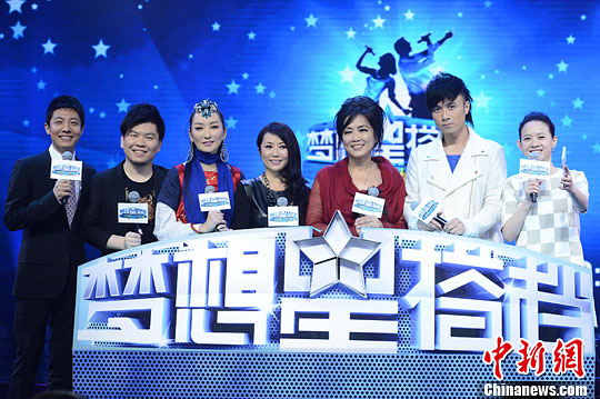 图为到场嘉宾:撒贝宁、常石磊、萨顶顶、程琳、齐豫、古巨基、曾宝仪。中新社发 李学仕 摄