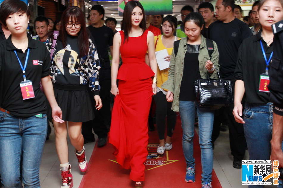2013年10月15日讯,柳岩早前现身为某品牌宣传站台,以一袭修身大红长裙亮相的柳岩尽显优雅气度,在工作人员的护送下一路浅笑盈盈,亲和大方,献唱一曲《孙尚香》引来现场粉丝的热烈回应。活动结束,柳岩由几十位安保人员护送离场,沿途备受追捧人头攒动,阵仗似女神出巡。