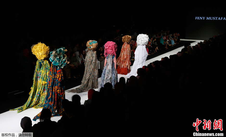 当地时间10月22日,印尼雅加达举行时装周,模特走秀。