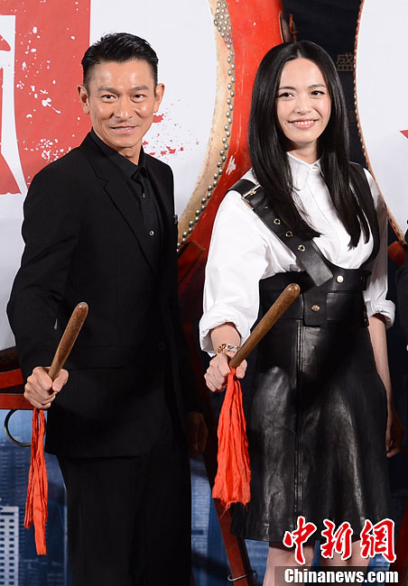 10月27日,电影《风暴》发布会在京举行。主演刘德华、林家栋、姚晨、胡军出席。身兼投资人、监制、主演三职的刘德华和香港安乐公司老板江志强携导演袁锦麟、主演林家栋、姚晨、胡军亮相,宣布影片定于12月12日贺岁档公映。图为刘德华、姚晨。中新社发 李学仕 摄