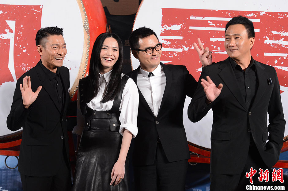 10月27日,电影《风暴》发布会在京举行。主演刘德华、林家栋、姚晨、胡军出席。身兼投资人、监制、主演三职的刘德华和香港安乐公司老板江志强携导演袁锦麟、主演林家栋、姚晨、胡军亮相,宣布影片定于12月12日贺岁档公映。图为刘德华、姚晨、林家栋、胡军。中新社发 李学仕 摄