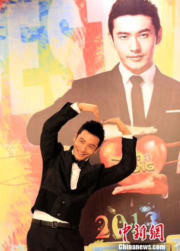 11月10日晚,著名影星黄晓明亮相上海维多利亚婚礼会所,和他的“铁杆粉丝”共享其庆生会。现场,英俊帅气的黄晓明与粉丝互动,场面热烈温馨。中新社发 潘索菲 摄