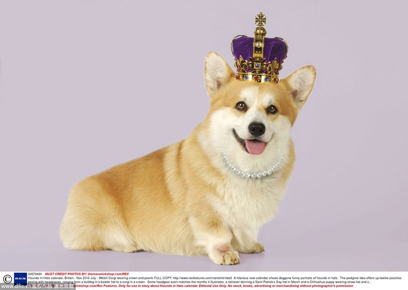 当地时间2013年11月报道,英国最新推出一款2014年猎狗日历,日历中的狗狗们戴着各式各样的帽子例如圣诞帽、草帽等等,模样十分的帅气萌人。