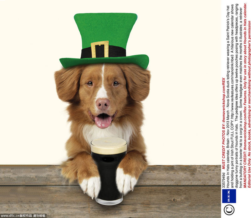 当地时间2013年11月报道,英国最新推出一款2014年猎狗日历,日历中的狗狗们戴着各式各样的帽子例如圣诞帽、草帽等等,模样十分的帅气萌人。