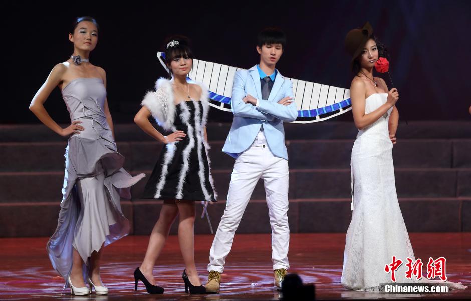 11月22日晚,南京东南大学的大学生在舞台上展示他们根据不同建筑的造型,用纸张设计制作的“建筑时装秀”。当日,持续两个月的“2013年东南大学新生文化季”在九龙湖小区举行闭幕式暨新生文艺汇演,以“梦想从东大启程!”为主题,结合中国梦和爱国爱校的教育,上演凝聚新生智慧与创意的节目,吸引了众多大学生前来分享充满青春活力、饱含文化气息与人文精神的文化大餐。中新社发 泱波 摄