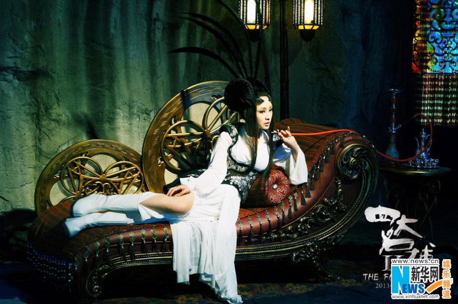日前,定档12月6日全国公映的3D魔幻巨制《四大名捕2》曝光一组柳岩“杀气女王”剧照,柳岩所扮演的“地宫女魔头如烟”一袭黑色蕾丝镶边白袍侧躺太妃椅,漆黑长羽毛盘发雍容华贵,性感美腿隐现,眉眼间霸气凌人不怒自威,女王范十足。《四大名捕2》由陈嘉上执导,聚集邓超、刘亦菲、吴秀波、柳岩、江一燕、郑中基、黄秋生、邹兆龙、吴映洁等豪华阵容,而柳岩作为新加入的女杀手角色,将在影片中担当“搅乱全局”的关键作用,更被先期观摩过影片的人士大赞“演技了得,令人过目难忘。”