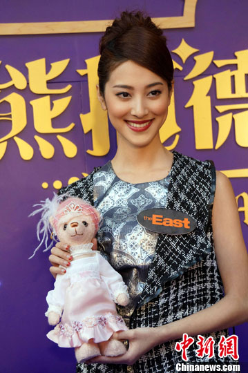 12月4日,应届香港小姐冠军陈凯琳出席华丽COUTURE艺术熊展揭幕仪式。陈凯琳怀抱穿上时装的“泰迪熊”,爱不释手。中新社发 洪少葵 摄