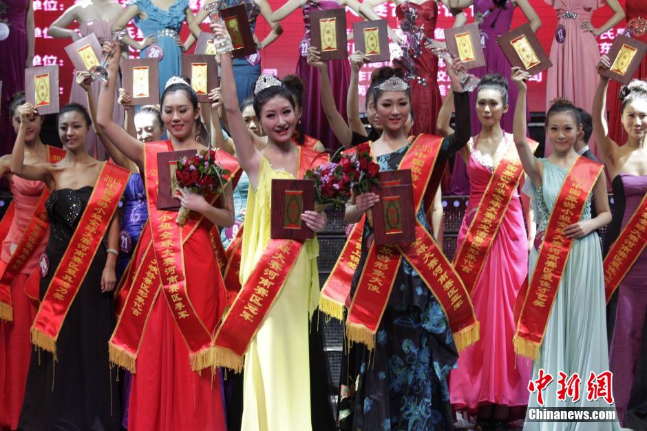 12月8日晚,2013中国旅游小姐全球大赛河南赛区总决赛在郑州举行,来自河南各地的28名选手,经过泳装、晚装、才艺等环节的激烈角逐,最后来自洛阳的16号选手牛梦田、平顶山市11号选手侯婉丽、平顶山市6号选手高露瀛分别获得了2013中国旅游小姐全球大赛河南赛区的冠亚季军。中新社发 王中举 摄