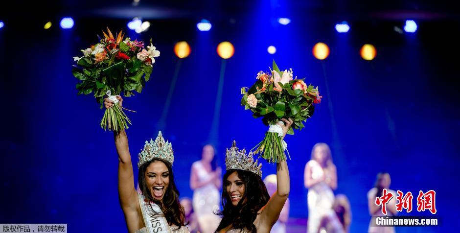 当地时间2013年12月8日,荷兰希尔弗瑟姆,选美大赛决赛落下帷幕,荷兰世界小姐以及荷兰环球小姐同时产生。图为两位获胜者,世界小姐Tatjana Maul (左)与环球小姐Yasmin Verheijen。