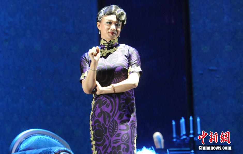 12月15日晚,由著名现代舞蹈家金星,京剧表演艺术家、海派清口创始人关栋天联袂“跨界”主演的话剧《暧昧》在福建大剧院上演。刘可耕 摄
