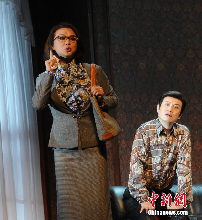 12月15日晚,由著名现代舞蹈家金星,京剧表演艺术家、海派清口创始人关栋天联袂“跨界”主演的话剧《暧昧》在福建大剧院上演。刘可耕 摄