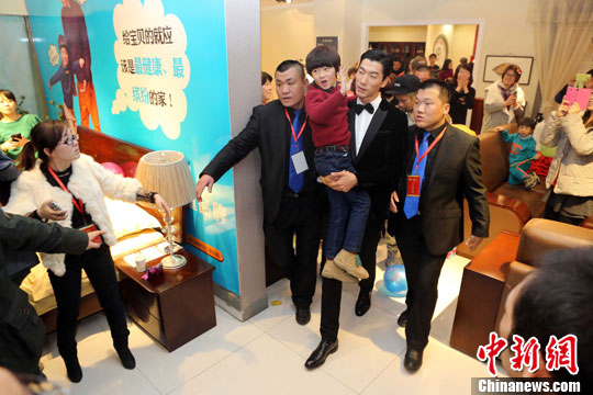 12月22日,张亮携其子天天出席山西太原某家居购物广场的商业活动,吸引了山西太原大批的“粉丝”前去围观,现场一度失控。中新社发 张云 摄