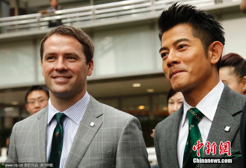 2014年1月26日,香港,欧文出席活动西装笔挺帅气依旧,与郭富城相见甚欢交流养马心得。图片来源:CFP视觉中国
