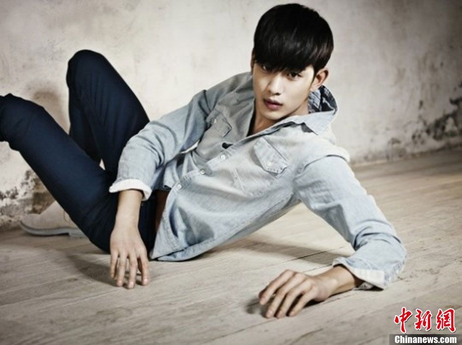 韩国艺人金秀贤不久前为某时尚杂志最新一期拍摄的封面写真日前曝光,因《来自星星的你》爆红的金秀贤穿着牛仔上衣大展型男风范,吸引了众多粉丝的目光。图片来源:CFP视觉中国