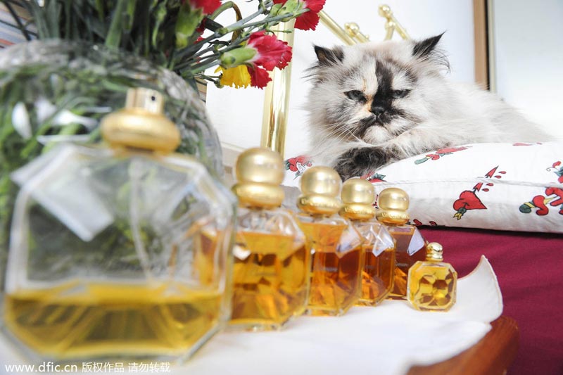 2014年2月26日报道,这可能是英国最受宠的猫咪,过着人类都不敢奢望的贵族生活。Dumpty Roo的主人把自己当成爱猫的仆人,挖空心思只想让它开心。从设计师专门打造的衣柜到20英镑一袋的猫粮,这只喜马拉雅猫被主人Carol Lake彻彻底底的宠坏了。52岁的Carol来自英国斯坦福德,她让自己的爱猫睡在昂贵的床单上,用水晶碗吃饭,喝瓶装水。外出的时候她都抱着它,因为它的爪子太娇贵,只能走在细羊毛上。没有爱猫的同意,Carol也不会跟老公John出去度假,甚至喝醉酒的时候还得偷偷溜进屋,因为Dumpty Roo不喜欢闻到酒味。