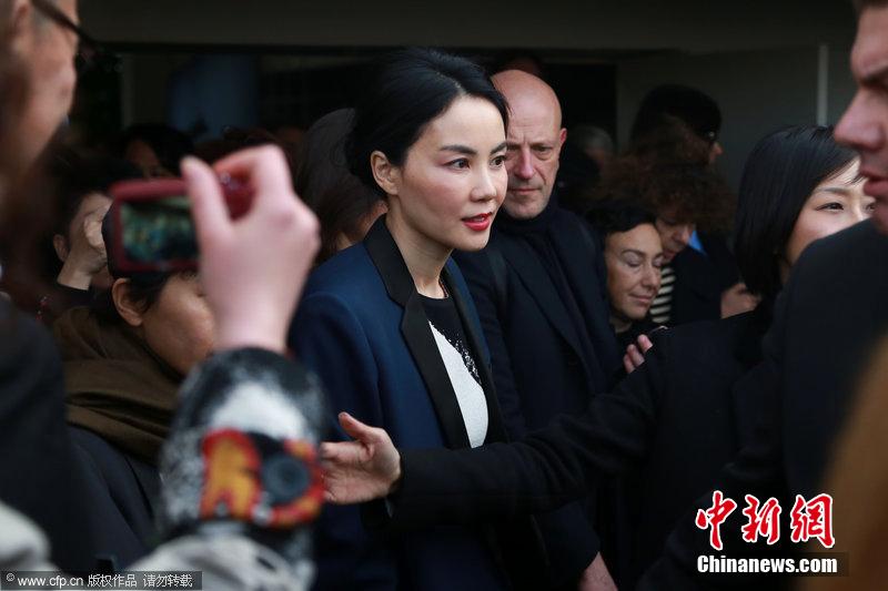 当地时间3月2日,14巴黎秋冬:Céline秀场,王菲身穿Céline 2014春夏涂鸦印花Tee,搭配深蓝长款西装外套亮相Céline 2014秋冬秀场。她匆匆看秀,匆匆离场,与其他女星拼死让媒体们狂拍不同,她打扮得清清爽爽,也完全没有想被媒体报道的意思。图片来源:CFP视觉中国