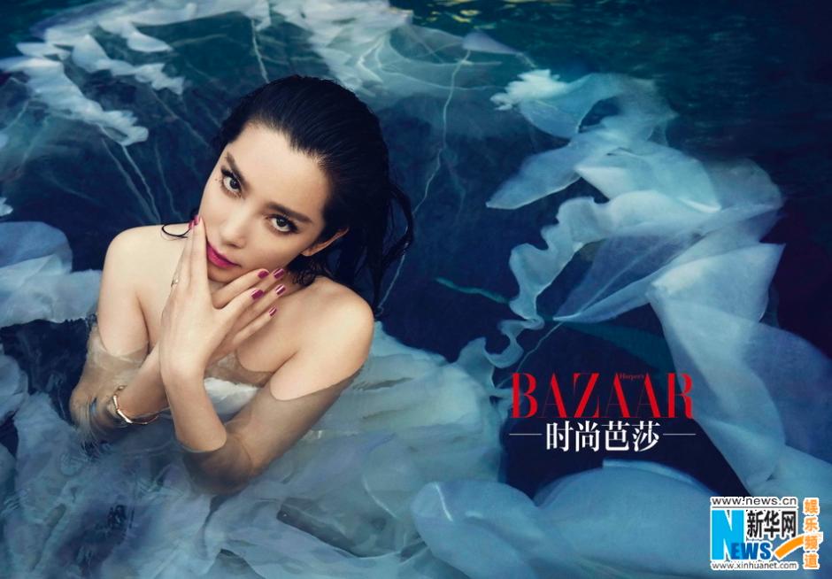 近日,李冰冰为某时尚杂志拍摄封面写真,她身穿各式华服妩媚出镜,眼神犀利显得英气十足,颇显其身为国际大牌明星的风范。另一组造型中,李冰冰首次尝试拍摄水中造型,尽显柔美气质。