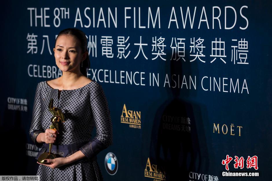 3月27日晚,小城澳门星光熠熠,第八届亚洲电影大奖颁奖典礼在新濠天地水舞间剧场隆重举行。章子怡在《一代宗师》中的出色表演令其摘得最佳女主角奖。