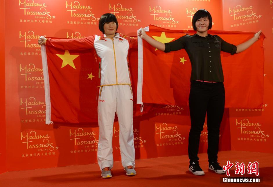 3月30日,即将开幕的北京杜莎夫人蜡像馆揭幕泳坛天才少女叶诗文蜡像。刚刚于不久前迎来18岁生日的叶诗文亲临现场,与新一代游泳小将们互动,共同见证蜡像揭幕。据了解,叶诗文蜡像与姚明,贝克汉姆,科比等众多国内外运动名人在今年五月底北京杜莎夫人蜡像馆体育名人区与观众见面。图为蜡像揭幕仪式。中新社发 杨阳 摄