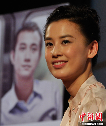 3月31日,新片《我在路上最爱你》在山西太原举行影迷见面会,该片男主角文章缺席宣传,只有女主角黄圣依一人巡回各地唱“独角戏”。中新社发 韦亮 摄