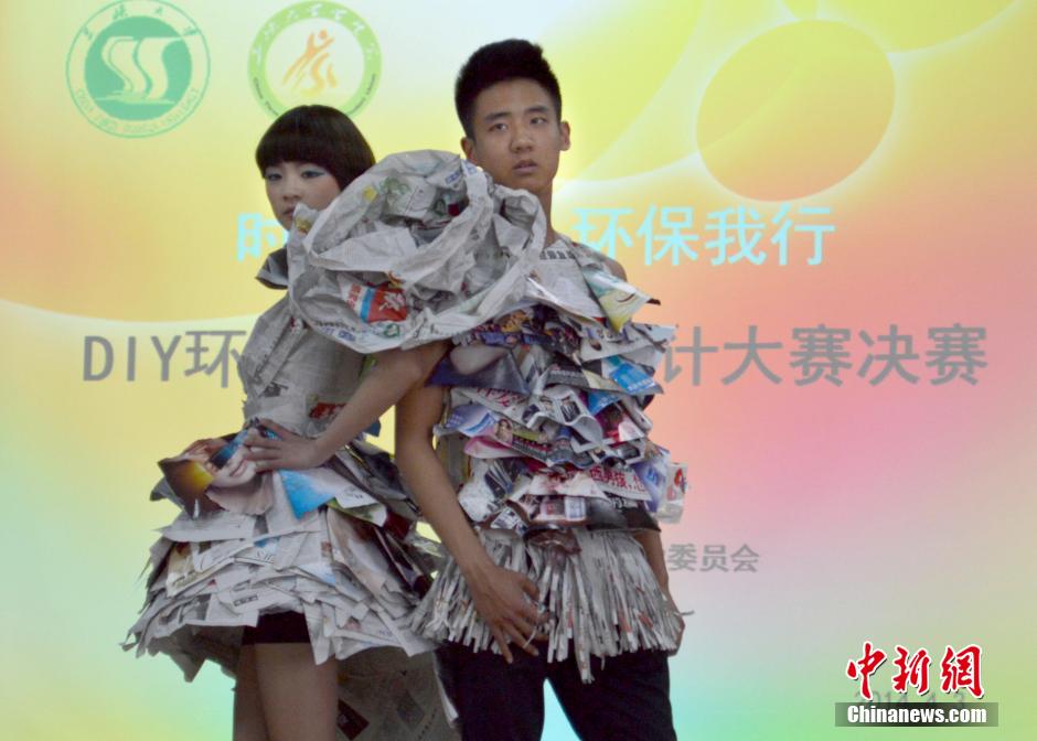 三峡大学近日举行了一场环保服饰创意设计大赛,大赛主题为“时裳青春环保我行”,要求同学们将环保理念与时尚造型结合起来,以时装大赛的形式唤起大家的环保意识。比赛中,参赛同学们发挥了丰富想像力,废弃报纸、塑料袋、旧窗帘、旧蚊帐等材料在选手们的手中,化成一件件亮丽别致的时装,大胆创新的设计让人眼前一亮。鲍雨聪 摄