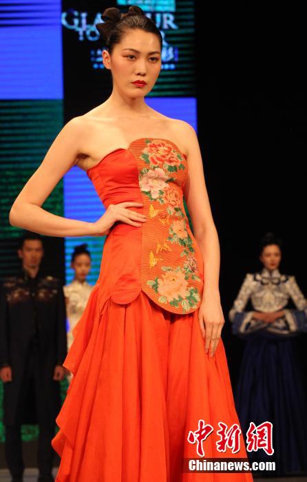 4月8日,由中国文化部、外交部联合主办的盛世华彩—中国—东盟服饰文化展在北京举行,NE.TIGER作为主宾国服饰品牌代表上演开场秀。来自印度尼西亚、马来西亚、新加坡、老挝、缅甸、菲律宾以及中国等东盟国家的服装设计师将在此次文化展上展示各国服装服饰作品。图为模特展示NE.TIGER中国华服作品。中新社发 钱兴强 摄