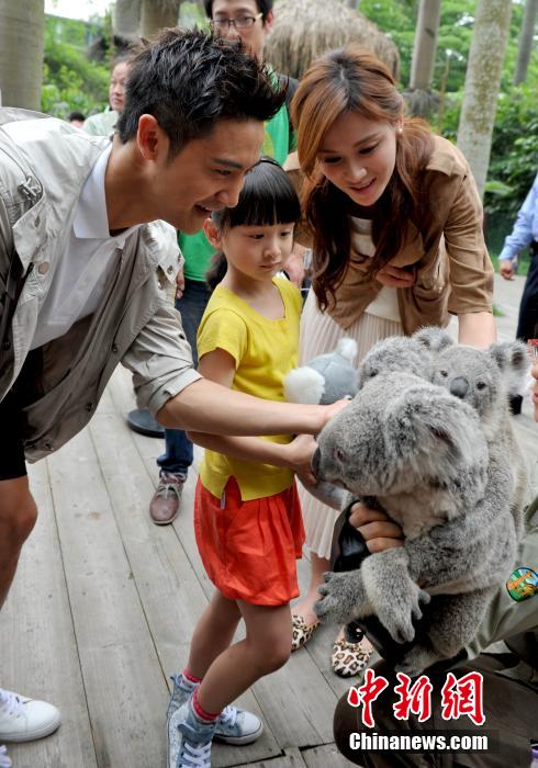 4月20日,广州长隆野生动物世界为“长隆幸福大使”田亮一家在考拉园举行了认养仪式。森碟为小考拉取名为“森小碟”,而田亮则风趣地把考拉爸爸Jordan取名为“田大锅”。长隆野生动物世界为田亮一家颁发爱心认养证书。中新社发 刘卫勇 摄