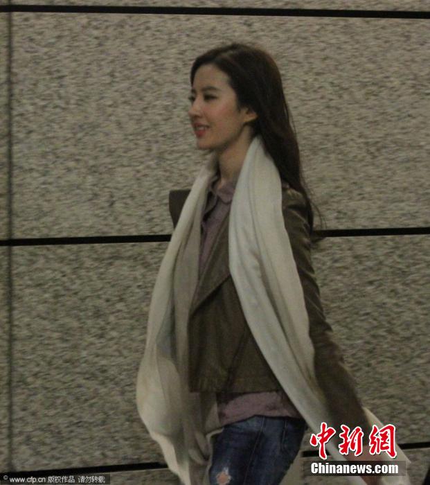 2014年4月21日讯,上海,刘亦菲现身机场。刚参加完北京电影节的刘亦菲素颜朝天,围白色纱巾仙气十足霸气现身,笑容灿烂直接赶片场显敬业。
