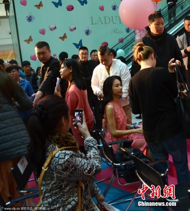 2014年4月23日讯,上海,早前,莫文蔚出席某活动。莫文蔚在化妆师的摆弄下当众补妆,身边人来人往不时的有人看她,还有人甚至拿着手机拍摄莫文蔚补妆的画面,然而莫文蔚毫不在乎,大大咧咧的一边补妆还一边与助理聊着天,自己也是不闲着,拿着湿巾纸擦着手臂,十分的悠闲。