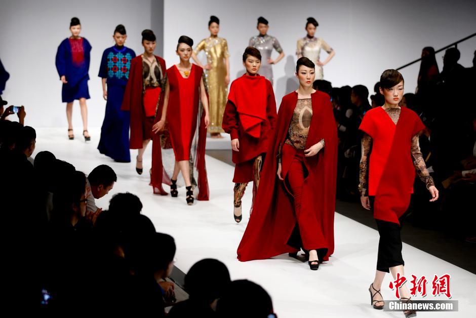图为中央民族大学美术学院发布“袍—基因”礼仪文化作品。中新社发 杜洋 摄