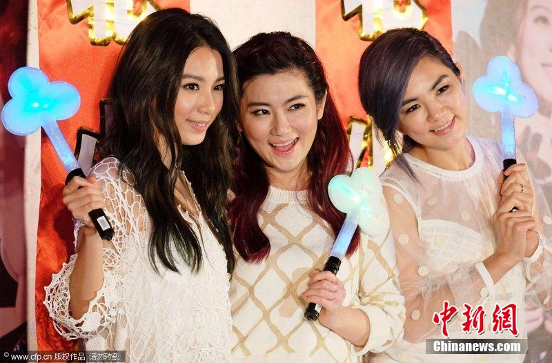 2014年4月24日讯,台北,24日,S.H.E.组合出席发布会为演唱会造势。女子天团SHE世界巡回演唱会去年六月从台北小巨蛋开跑后,三个小女子唱普遍全亚洲,2014年三人决定再度集合开唱,将在7/19高雄、8/9、8/10两天台北,重温三人出道12年。